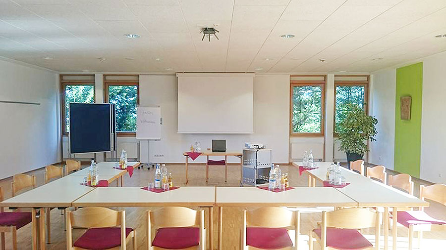 Der lichtdurchflutete Seminarraum 1 mit Blick in die Weinreben bietet vielfältige Nutzungsmöglichkeiten. Das Foyer kann für Pausenmahlzeiten ideal mitgenutzt werden. Aufgrund seiner guten Akustik ist dieser Raum besonders für Chöre und Orchester geeignet. Optional kann ein E-Piano zur Verfügung gestellt werden.